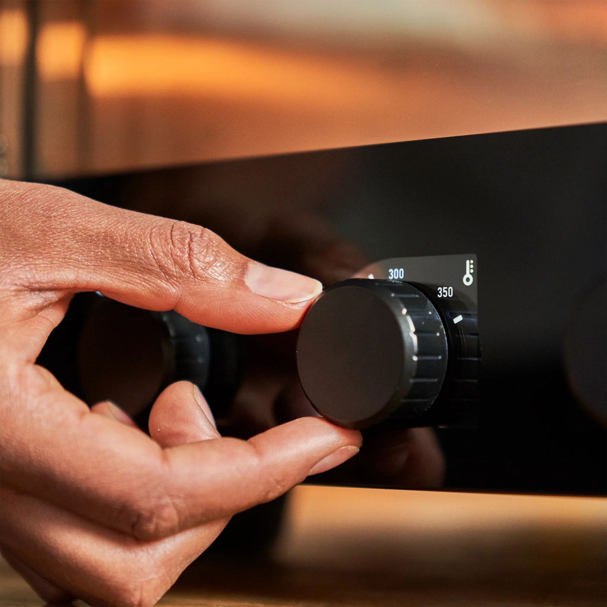 Cuptor electric pizza OONI Volt 12 are o usa cu geam triplu din sticla borosilicata pentru a retine caldura. Cu butoanele de control pentru temperatura, timp si distributia caldurii, coacerea imprecisa este de domeniul trecutului. Elementele de incalzire superioare si inferioare pot fi controlate separat. Suprafața generoasa de coacere permite prepararea de pizza cu diametrul de 33 cm. Manerele incorporate si greutatea redusa de 17,8 kg il fac usor de transportat.