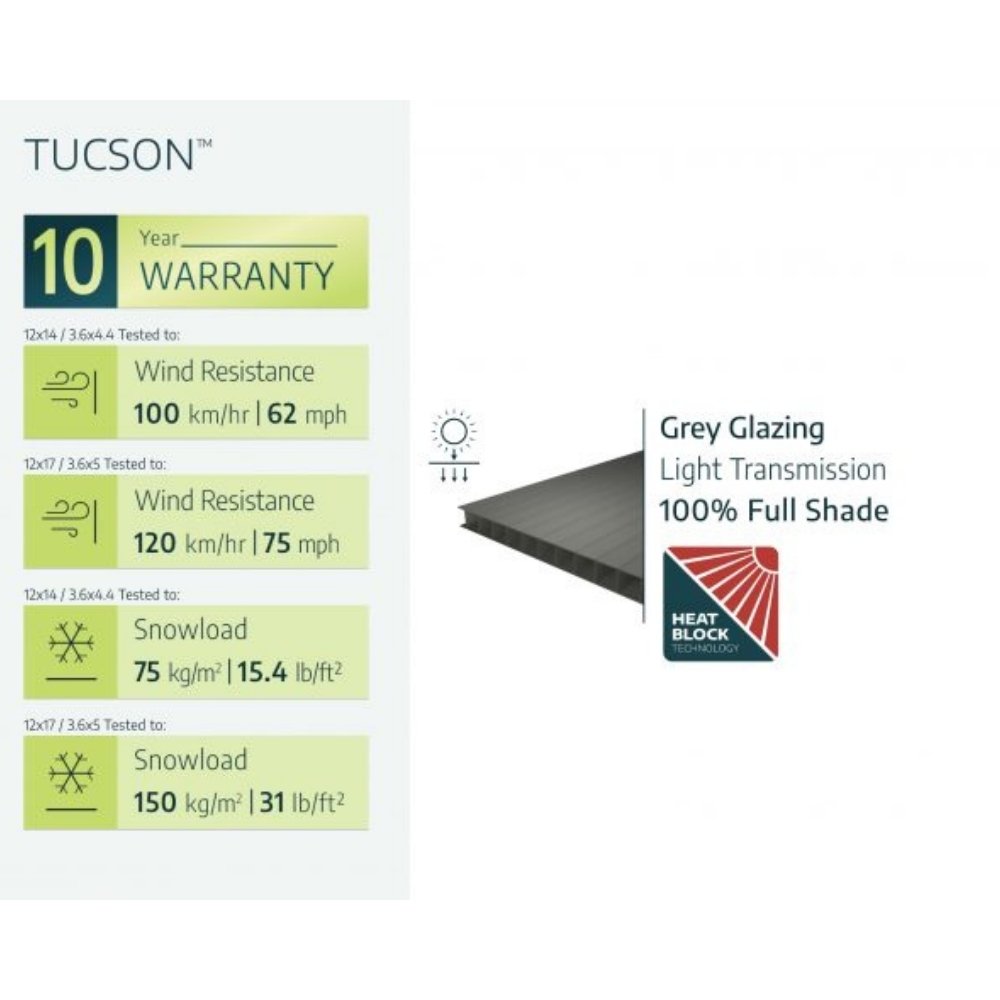 Realizat din materiale care nu necesită întreținere, Tucson este o alegere practică pentru curtea sau grădina ta, oferind protecție în fața condițiilor meteo imprevizibile. Este ideal pentru zona de grătar, spa-ul de exterior, ca bucătărie de vară, spațiu de joacă temporar pentru copii sau loc de adunare între prieteni. Oferă un cadru elegant și rezistent, perfect pentru a fi utilizat pe tot parcursul anului.