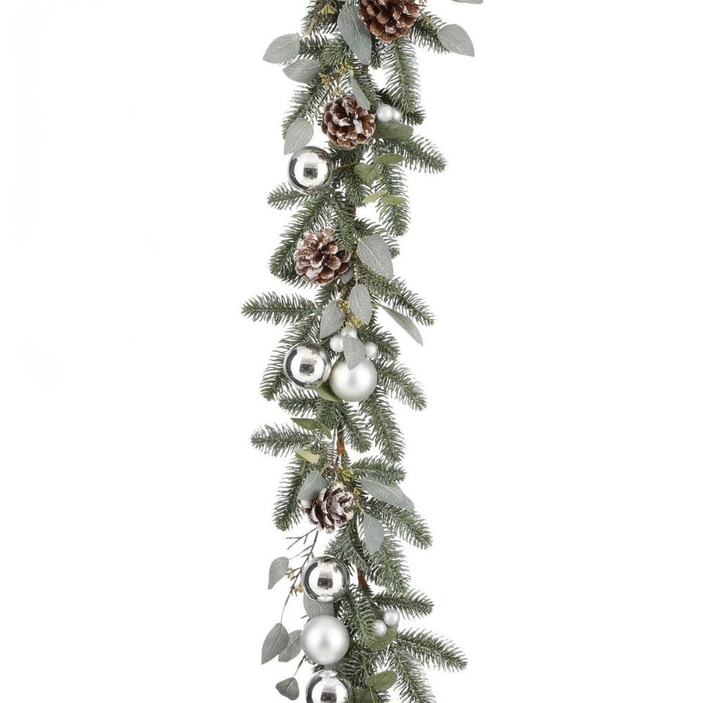 Decorează ușa de la intrare, balustrada, foișorul sau terasa cu ghirlande festive de Crăciun. Ghirlanda argintie Montreal are 180 cm lungime și 15 cm lățime, ramuri brad artificial PE, globuri și conuri argintii, fiind ideală pentru decor elegant de sărbători.