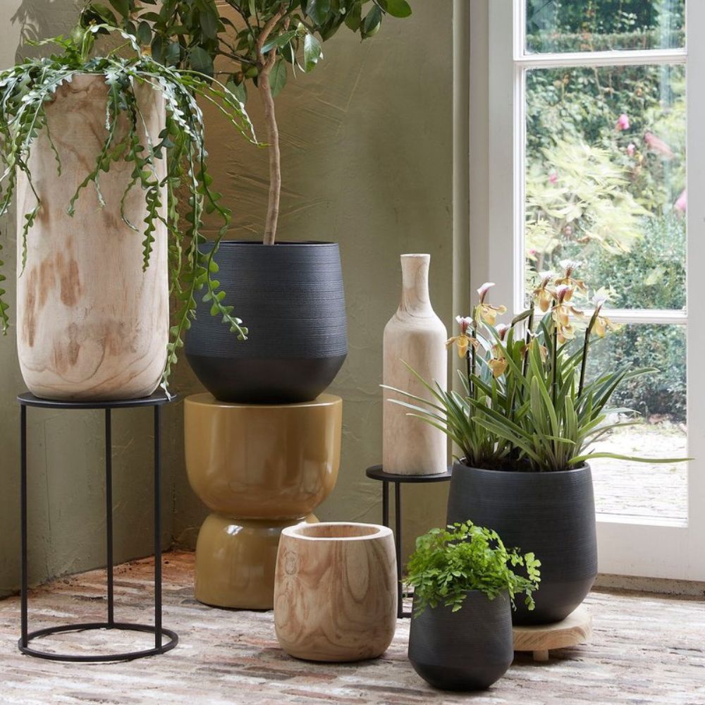 Ghiveci pentru plante din lemn natural de paulownia, unic! Ghiveciul măsoară H40 x Ø40 cm.