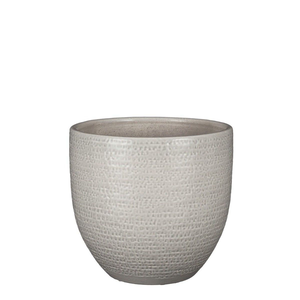 Ghiveci de teracotă într-o culoare gri deschis, lucios. Ghiveciul are un finisaj frumos texturat și măsoară H22 x Ø24 cm.
