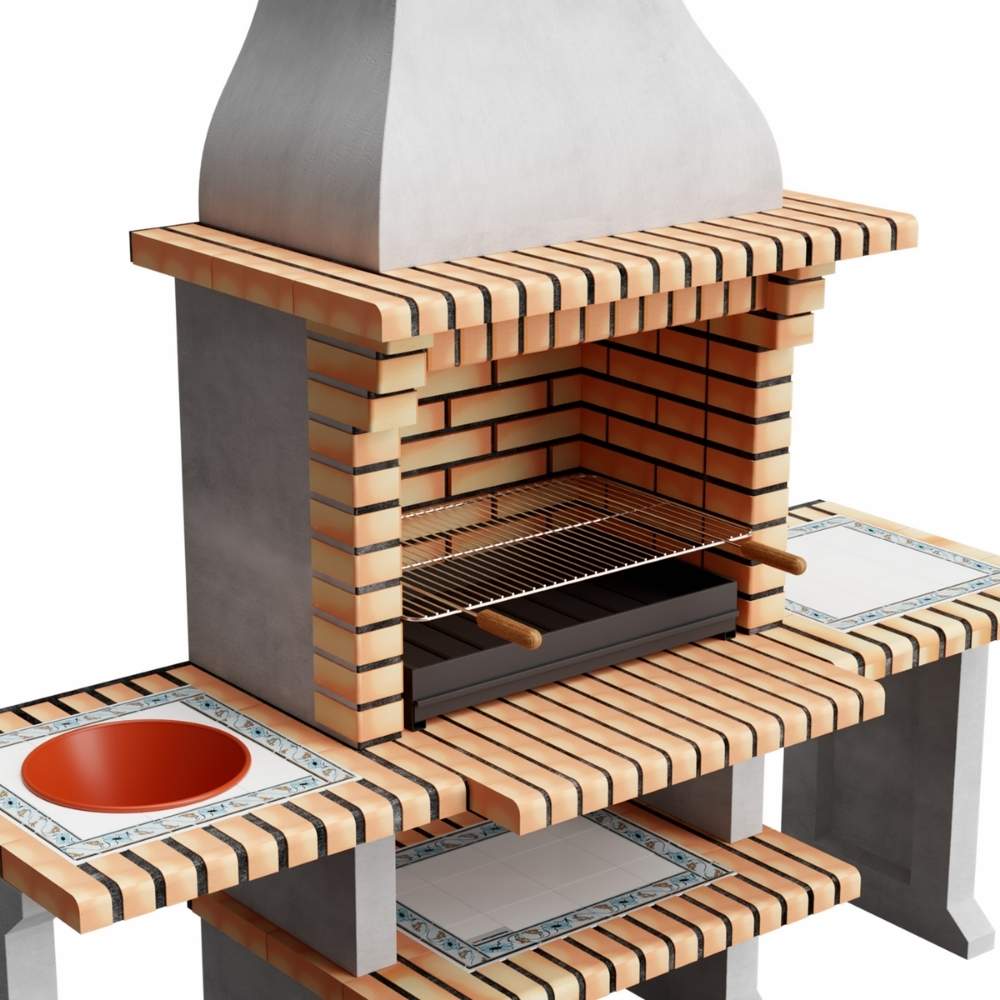 Barbecue NEW AZORES XL este un grătar modular impunător, perfect pentru cei care iubesc gătitul în aer liber în stil tradițional. Construit din beton refractar gri și cărămidă portocalie deschisă, acest model nu necesită vopsire și oferă o durabilitate excelentă.