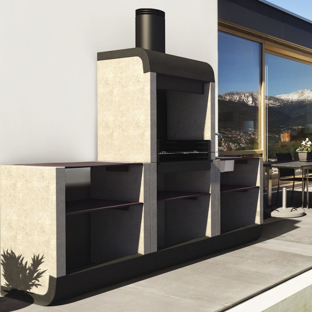 Transformă-ți grătarul într-o bucătărie mică de exterior cu ajutorul corpurilor modulare SUD. Seria de grătare din beton SUD de la Tuozi au design modern, finisaj excelent neted sau texturat și permit utilizarea grătarului cu lemn de foc sau cărbune. Cu o suprafață de gătit de 3160 cm2 și opțiune de capac cu termometru pentru gătit indirect, grătarul modular SUD PLUS satisface cerințele oricărui pasionat de gătit la grătar. În plus, cuptorul pentru pizza 8071/1 inclus, vă permite să gătiți pizza, pâine și alte bunătăți. Mini cuptorul de pizza este de asemenea din beton.