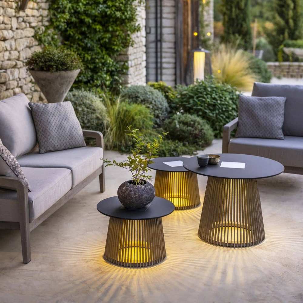 Transformă-ți spațiul exterior într-un ambient rafinat și practic cu masa Tecka Solar Ø70 cm de la Les Jardins.