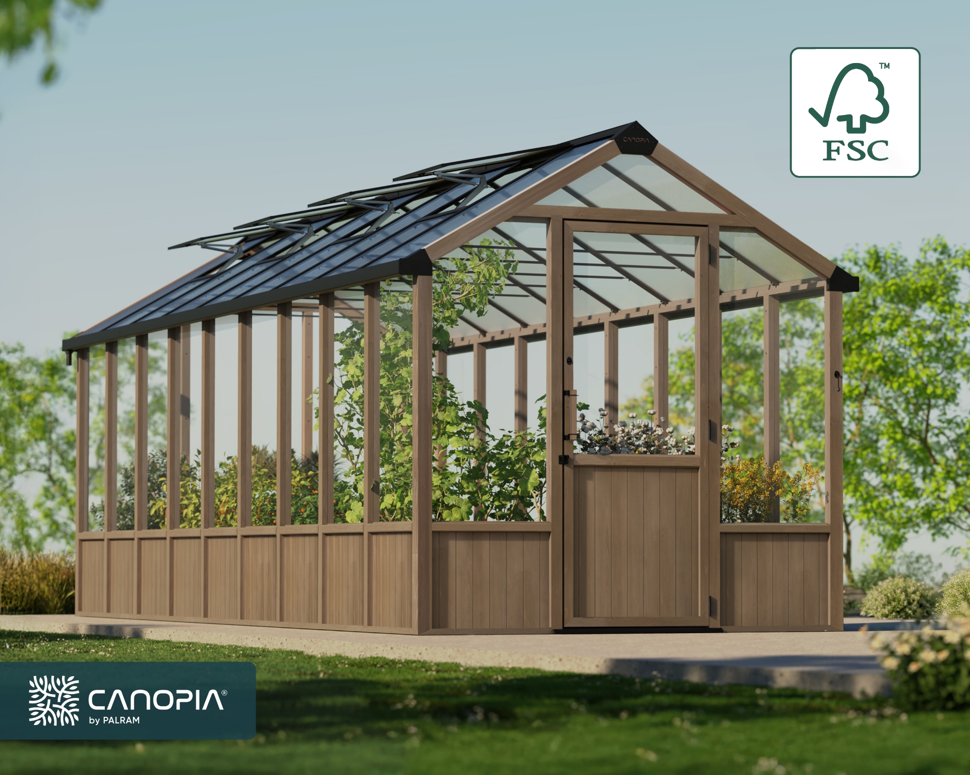 Kitul pentru Seră din lemn de cedru și policarbonat Natura Canopia creează un spațiu funcțional și frumos, atât pentru cultivarea plantelor cât și pentru relaxare, petreceri sau loc de zi.