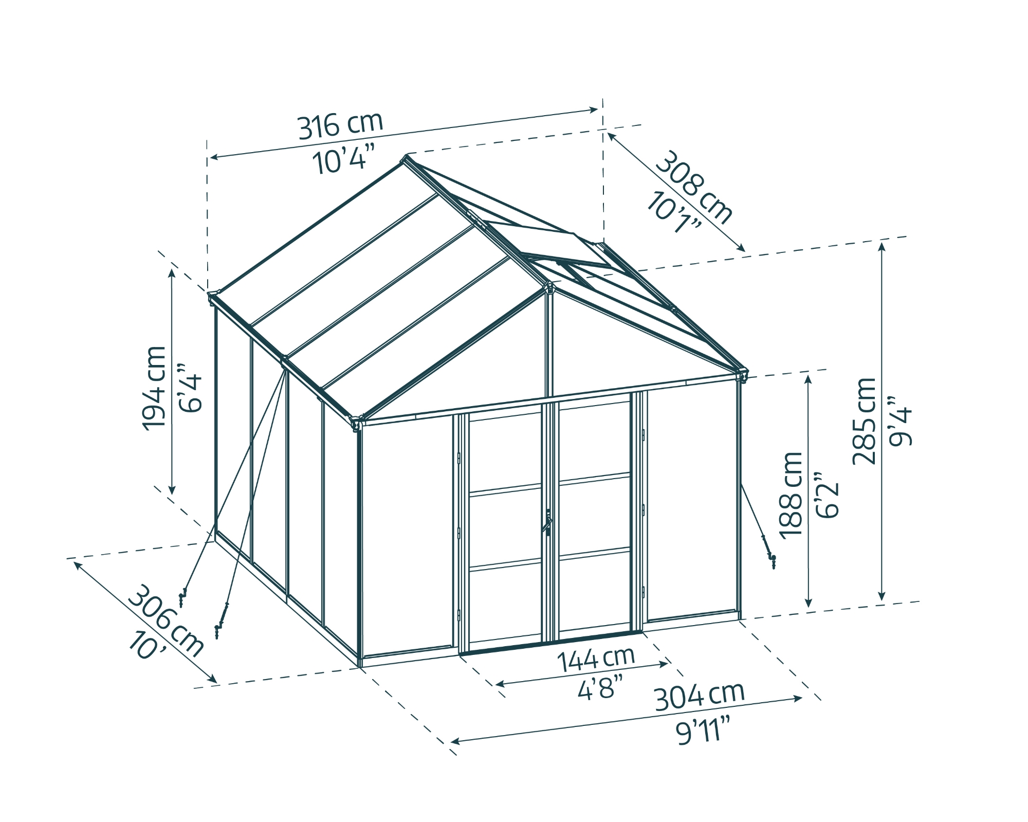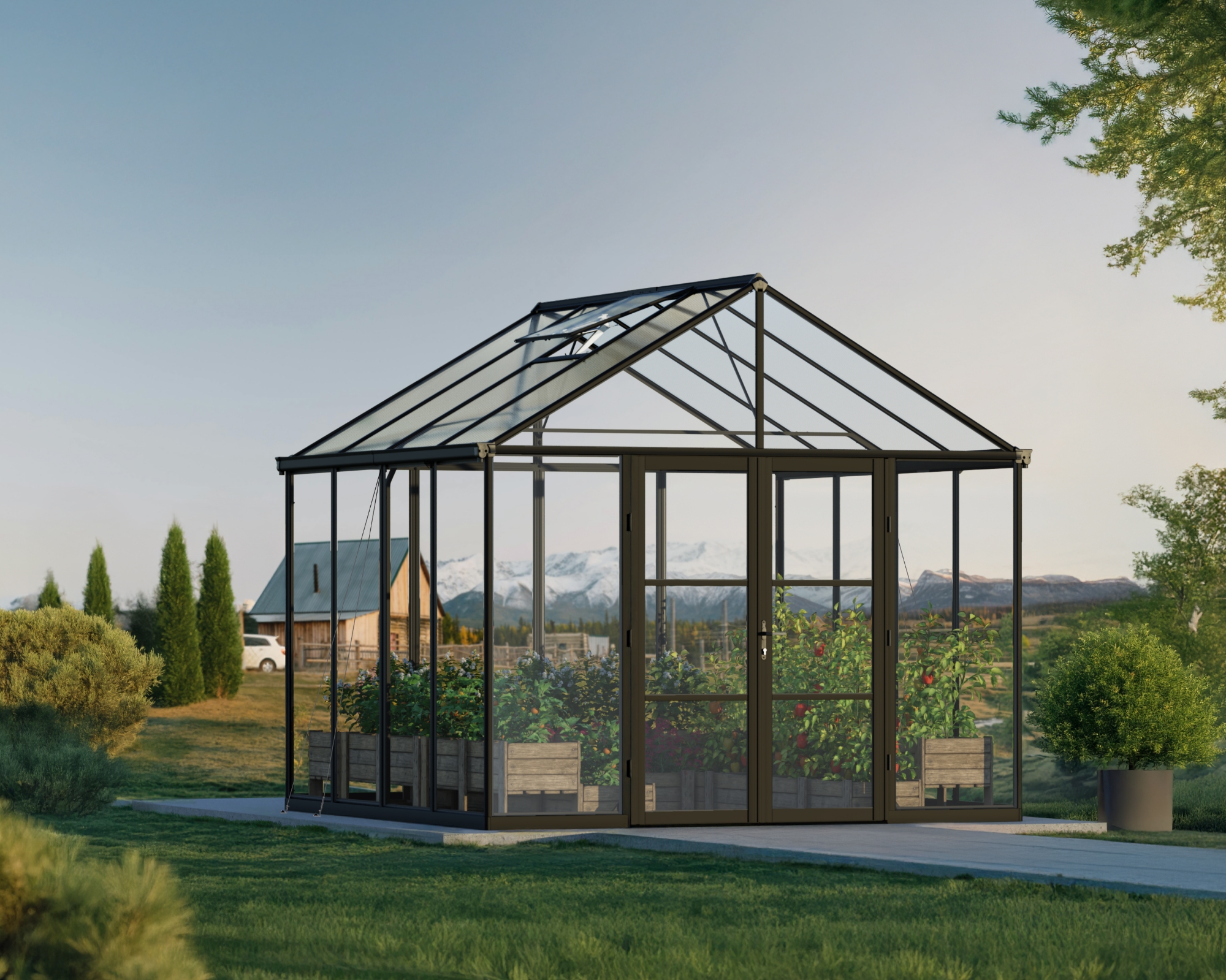 Sera din policarbonat ARIA Crystal Clear 3x3 m, Palram – Canopia îmbină designul elegant cu funcționalitatea de top, oferind un spațiu ideal pentru pasionați de grădinărit sau pentru cei care caută să își construiască un loc cosy în aer lober, cu vedere 100% spre natură. Construită din panouri din policarbonat complet transparente, sera ARIA Crystal Clear asigură pătrunderea luminii naturale și protecție împotriva razelor UV.