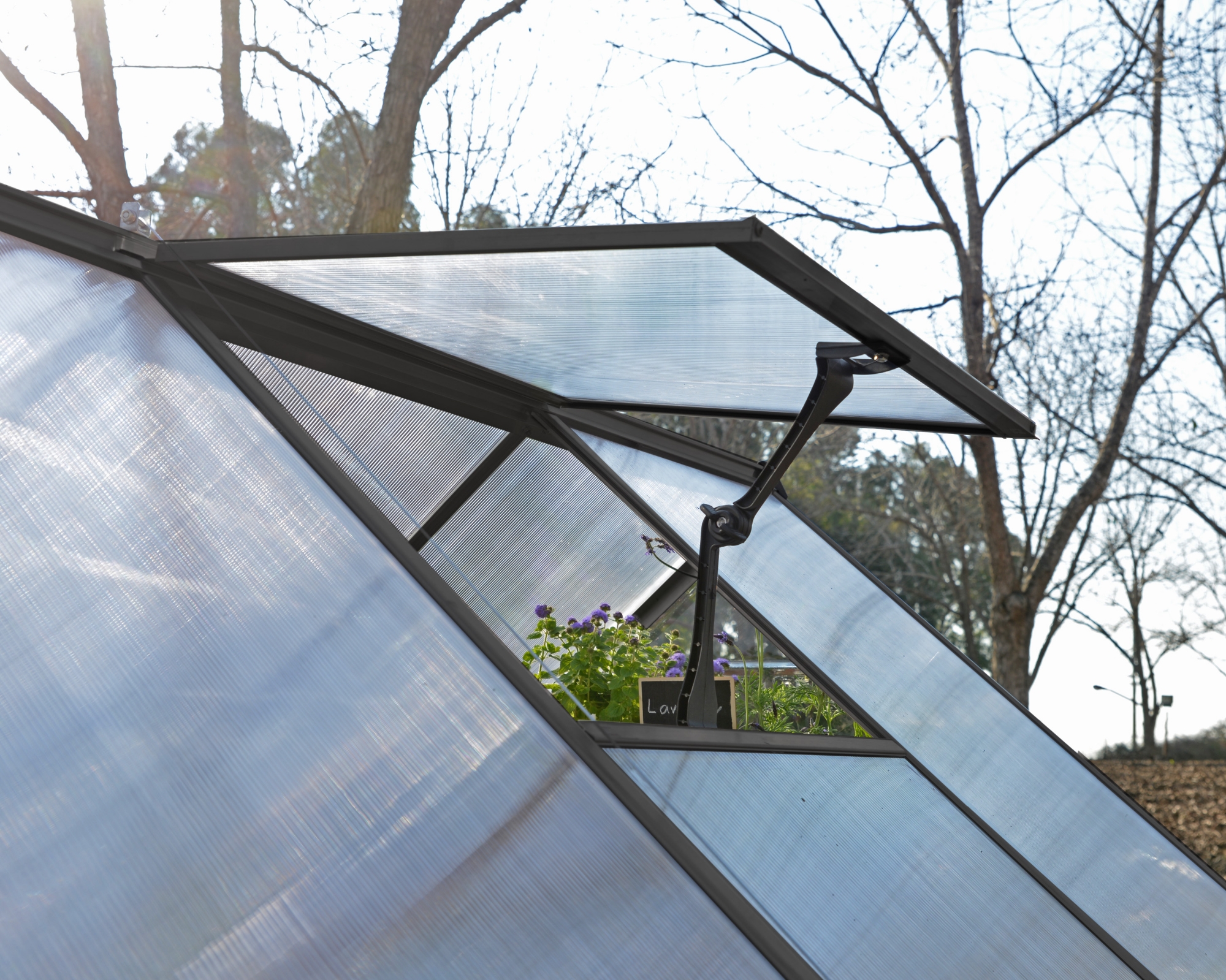Când vă spunem că Kiturile de seră Palram - Canopia Balance oferă plantelor dumneavoastră condițiile optime pentru îngrijire și creștere, vorbim serios. Cu două tipuri de vitraj, obțineți o seră DIY echilibrată care combină protecția panourilor de acoperiș cu pereți dubli difuzați cu transmiterea luminii prin panourile laterale clare ca cristalul, pentru condiții ideale de creștere. Toate panourile sunt fabricate din policarbonat protejat UV, un polimer de înaltă calitate, asemănător sticlei și practic indestructibil, care este potrivit în mod unic pentru sere. Spațiul de lucru mare vă oferă mult loc pentru a crește o abundență de legume și ierburi și pentru a depozita uneltele și accesoriile necesare. Sera Balance este, de asemenea, extrem de accesibilă cu uși duble largi și un prag jos pentru ca roabele să intre și să iasă și destul loc pentru a transfera tăvi mari de plante. Combinația dintre panourile de policarbonat sigure și cadrul de aluminiu rezistent la rugină și grinzile de suport extra puternice vă oferă o seră bine proiectată și durabilă, astfel încât să nu vă faceți griji cu privire la soliditatea sau siguranța serei dumneavoastră. Pentru o adăugare frumoasă, bine proiectată și spațioasă la experiența dumneavoastră de grădinărit, obțineți o seră Balance de grădină astăzi! • Policarbonat: 100% protejat UV, practic indestructibil și nu devine galben sau fragil în timp • Panouri de acoperiș cu pereți dubli din policarbonat: Panourile de acoperiș de 4 mm protejează de expunerea puternică la soare și extind sezonul prin protejarea plantelor de înghețurile de toamnă. • Panouri de policarbonat clare ca cristalul: Panourile laterale translucide oferă o transmitere a luminii de peste 90% • Cadru din aluminiu acoperit cu pulbere: Cadrul este un metal rezistent, rezistent la rugină și include grinzi interne de suport și o bază de oțel galvanizat pentru rezistență și stabilitate suplimentare. Opțiuni de culori pentru structura din aluminiu: Argintiu - finisaj natural, Gri - RAL 7012, Verde - RAL 6005. • Rezistență la vânt și zăpadă: Rezistă la vânturi de până la 90 km/h și 75 kg/m² de zăpadă. • Caracteristici suplimentare: Include un sistem de jgheab încorporat pentru a canaliza apa de ploaie utilizată pentru irigare și ferestre de ventilație manuale care ajută la fluxul de aer, permit ajustarea umidității, temperaturii și nivelurilor de ventilație și vă mențin răcoros în zilele călduroase. • Acces ușor: Rampă cu prag jos și uși duble largi și înalte cu balamale blocabile oferă acces ușor pentru roabe, mașini de tuns iarba sau scaune cu rotile (lacăt neinclus) • Auto-asamblare: Sistemul de panouri glisante include profile pre-găurite și panouri glisante pre-tăiate pentru o instalare ușoară.
