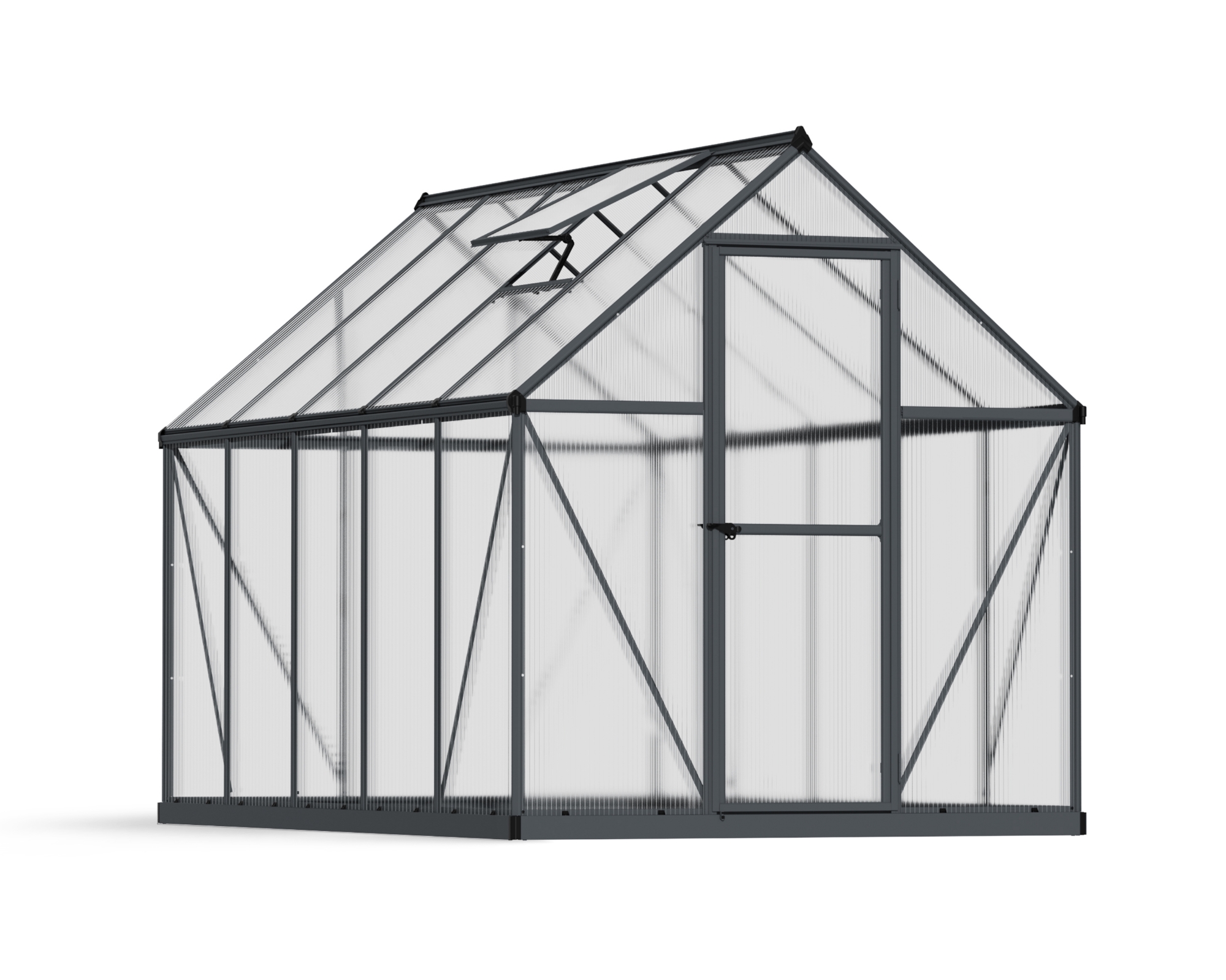 Bucurați-vă de grădinărit cu kiturile Canopia Mythos Greenhouse cu un design elegant. Geamul din policarbonat cu protecție UV, cu pereți dubli, face ușor controlul temperaturii, umidității, fluxului de aer și difuzează lumina solară pentru plantele sensibile cu panourile. Acest solar de dimensiuni versatile include o bază perimetrală din oțel galvanizat rezistent la rugină, adăugând suport structural, stabilitate și aliniere. Fereastra de ventilație a solarului ajută la menținerea temperaturii și umidității dorite și asigură ventilație. Fabricat din materiale 100% reciclabile, combinația de panouri de policarbonat sigure cu cadrul din aluminiu rezistent la rugină vă oferă un solar bine proiectat și durabil, astfel încât să nu trebuie să vă faceți griji cu privire la robustețe sau siguranță. Puternic și perfect proiectat pentru a se potrivi spațiilor mai mici, acest Mythos Greenhouse oferă ani de bucurie de grădinărit fără întreținere. Puteți începe să plantați mai devreme și să continuați să creșteți mai târziu. Panouri Difuzate Pentru Acoperiș și Pereți: Panouri pentru acoperiș cu pereți dubli de 4 mm protejează de expunerea puternică la soare (82% transmitanță luminoasă) și protejează plantele de înghețurile de toamnă. Policarbonat: Panourile rezistente sunt 100% protejate UV, practic indestructibile și nu devin galbene sau fragile în timp. Structură Durabilă: Finisaj natural de moară și cadru din aluminiu cu acoperire pulbere, ambele sunt metale puternice și rezistente la rugină. Opțiuni Culoare Structură din Aluminiu: Argintiu - finisaj natural de moară, Gri - RAL 7012, Verde - RAL 6005. Asamblare DIY: Sistemul de panouri glisante include profile pre-găurite, panouri glisante pre-tăiate pentru o instalare ușoară. Bază din oțel galvanizat: Bază din oțel galvanizat inclusă cu găuri desemnate pentru ancorare (ancorele nu sunt furnizate) pentru stabilitate structurală suplimentară. Caracteristici Ușă: Ușă din aluminiu cu balamale, blocabilă, cu prindere magnetică prietenoasă pentru a menține solarul deschis. Poate fi asamblată pe ambele părți. Ventilație: Ferestrele de ventilare manuală de pe acoperiș permit ajustarea umidității, temperaturii și ventilației pentru a vă menține răcoros în zilele călduroase. Modelele 6x14/2x4.3 includ două ferestre de ventilare pe acoperiș. Jgheab: Include sistem de jgheab încorporat pentru a canaliza și colecta ușor apa de ploaie. Rezistență la Intemperii Timp de Un An întreg: Rezistent la vânt, zăpadă și grindină. Testat să reziste la vânturi de până la 90 km/h și 75 kg/m² de zăpadă. Accesorii Certificate Disponibile: Încălzitor cu ventilator, kituri de iluminat, kit de pânză de umbrire, deschizător automat pentru ventilația acoperișului, etajere și rafuri, suporturi de plante, kit de spalier și kit de irigare prin picurare sunt disponibile pentru achiziționare separat. Garanție: Garanție Limitată de 5 ani. Asigurați-vă că instalați pe o suprafață plană și nivelată pentru construcția cu bază solidă.