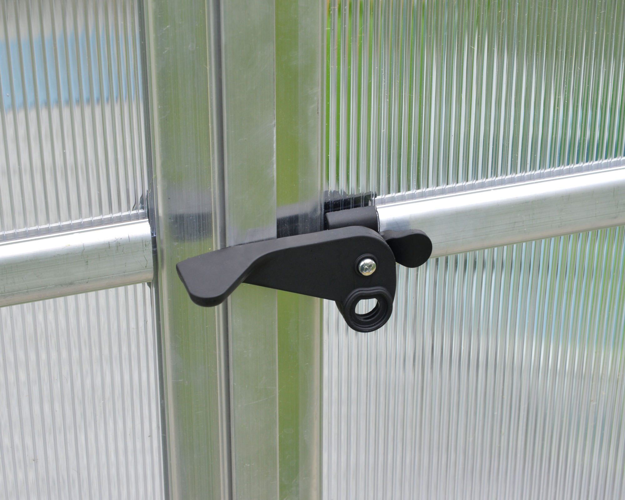 • Panouri din policarbonat cu pereți dubli de 6 mm pentru pereți și acoperiș și de 4 mm pentru uși și ferestre mențin temperaturi ideale și protejează împotriva expunerii puternice la lumina solară