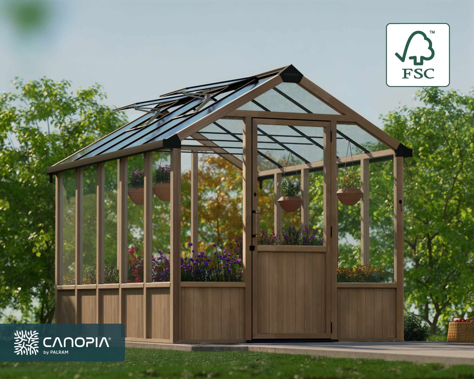 Kitul pentru Seră din lemn de cedru și policarbonat Natura Canopia creează un spațiu funcțional și frumos, atât pentru cultivarea plantelor cât și pentru relaxare, petreceri sau loc de zi.