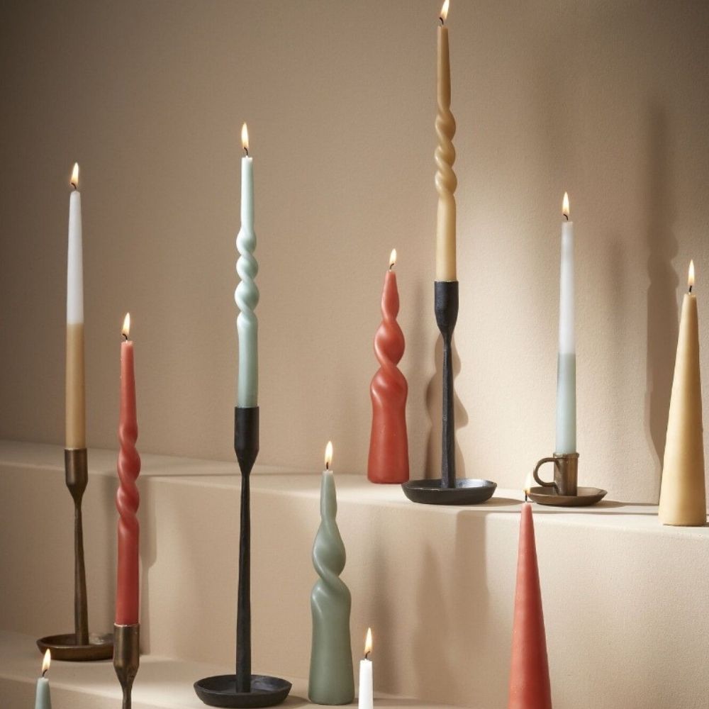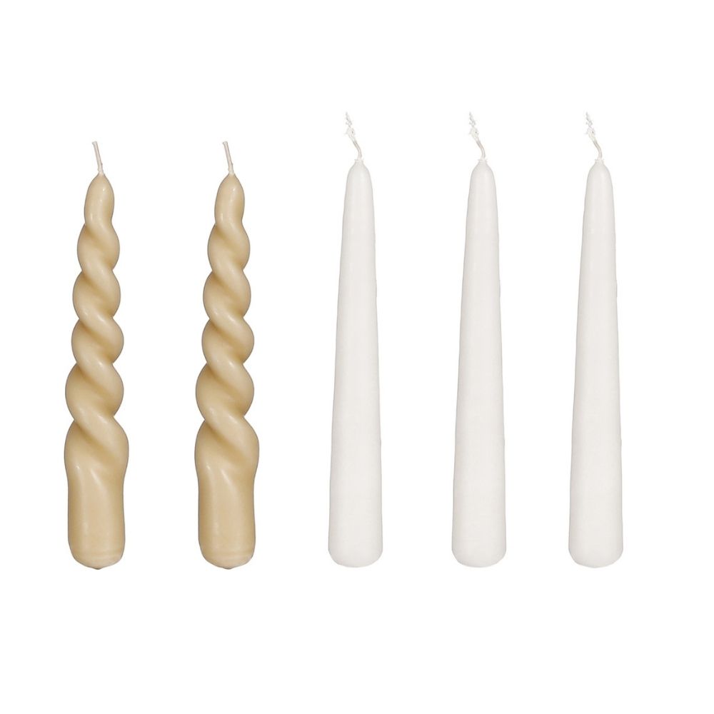 Acest set de 5 lumânări în formă de con de la Mica Decorations este format din 3 lumânări drepte și 2 răsucite, de culori crem deschis și crem închis. Lumânarea are o bază plată, astfel încât poate fi așezată pe un suport sau sfeșnic. Așezați lumânarea separat sau creați un aranjament împreună cu diferite lumânări pentru o atmosferă confortabilă. Lumânarea este disponibilă în mai multe culori.