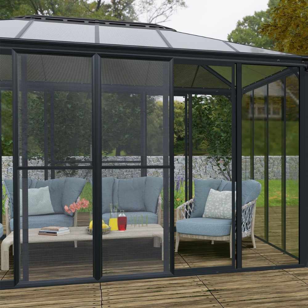 Setul de uși Screen de la Palram – Canopia Screen este atrăgător și funcțional, vă va spori confortul, permițându-vă să vă bucurați de briza proaspătă, dar să feriți insectele nedorite. Setul de uși Screen a fost conceput special pentru SanRemo, pentru a fi asamblat pe propriul canal, fără a îndepărta ușile. Pur și simplu conectați ușile pre-asamblate cu ecran glisant la oricare sau toate cele 3 laturi pentru o fațadă fără sudură.