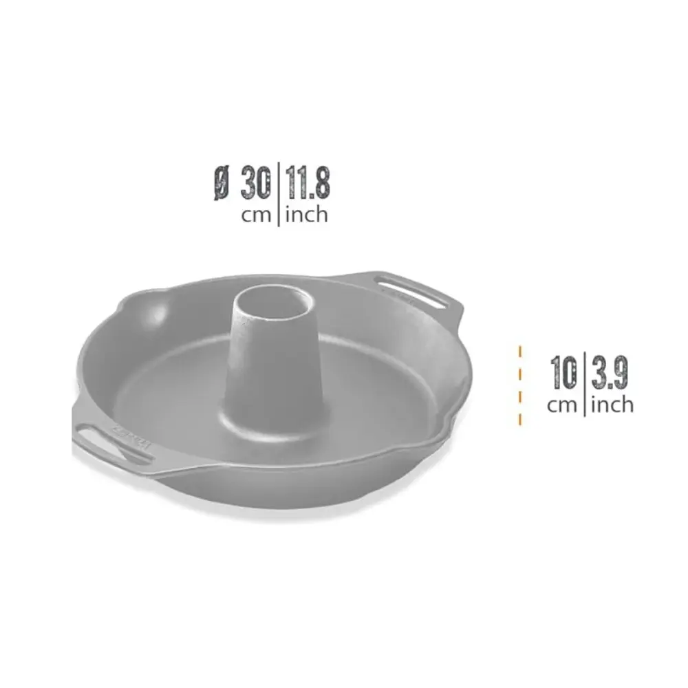 Un model de tigaie fonta rotisor pui potivit pentru prepararea diferitelor tipuri de pasare la rotisor. Fie ca pregatiti un pui, prepelita sau rata in aceasta tigaie fonta rotisor caldura se distribuie uniform astfel incat pasarea va fi preparata savuros. Sucul provenit din carne ramane in vecinatatea preparatului potetand aroma, la fel si grasimea aferenta. Fonta asezonata, de calitate premium, are o rezistenta indelungata si confera o aroma naturala, traditionala preparatului.