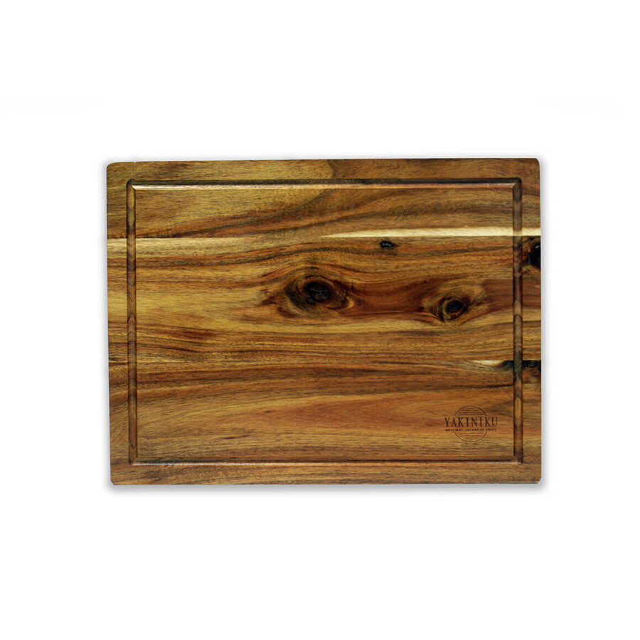 Dacă doriți cu adevărat să grătăriți în stilul Yakiniku, atunci aceast frumos tocător nu poate lipsi din bucătăria dvs. Pe lângă funcția de tăiere în siguranță a alimentelor, acesta este locul în care aroma este conferită felurilor de mâncare prin ierburi aromate sau o marinată bună. În plus, îl puteți folosi și ca platou de prezentare, bucăți frumoase de carne sau pește vor arăta speciale pe această placă. Tocătorul de la Yakiniku este fabricat din lemn de salcâm. Dimensiuni: lățime 41 cm, adâncime 30,5 cm, înălțime 4 cm. Atenţie! Acest produs nu se spala in mașina de spălat vase.