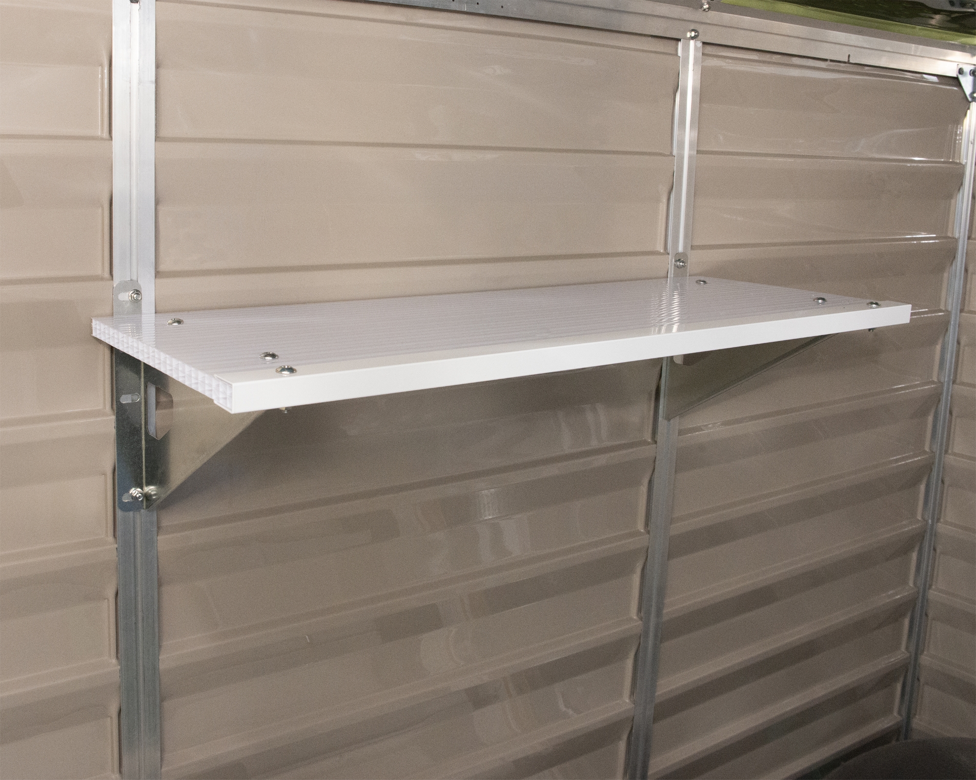 Optimizează-ți spațiul de depozitare cu acest Kit de Raft pentru Depozitare. Acesta este un kit complet, care vine cu un raft de policarbonat de înaltă calitate de 16 mm, două suporturi din oțel galvanizat și elemente de fixare. Acest raft îți permite să eliberezi acel spațiu de podea atât de necesar și să organizezi eficient căsuța de grădină. Raftul poate susține până la 66 lb. Este destinat să fie montat pe rama de aluminiu a căsuței de grădină SkyLight și a Seriei Rubicon. Dimensiune asamblată: 33,3 in. L x 12 in. W x 8,7 in. H Raftul susține până la 66 lbs. Kit complet, ușor de instalat Realizat din policarbonat durabil de înaltă calitate de 16 mm și suporturi din oțel galvanizat Compatibil doar cu toate căsuțele de grădină SkyLight & Rubicon de la Palram-Canopia Fără întreținere